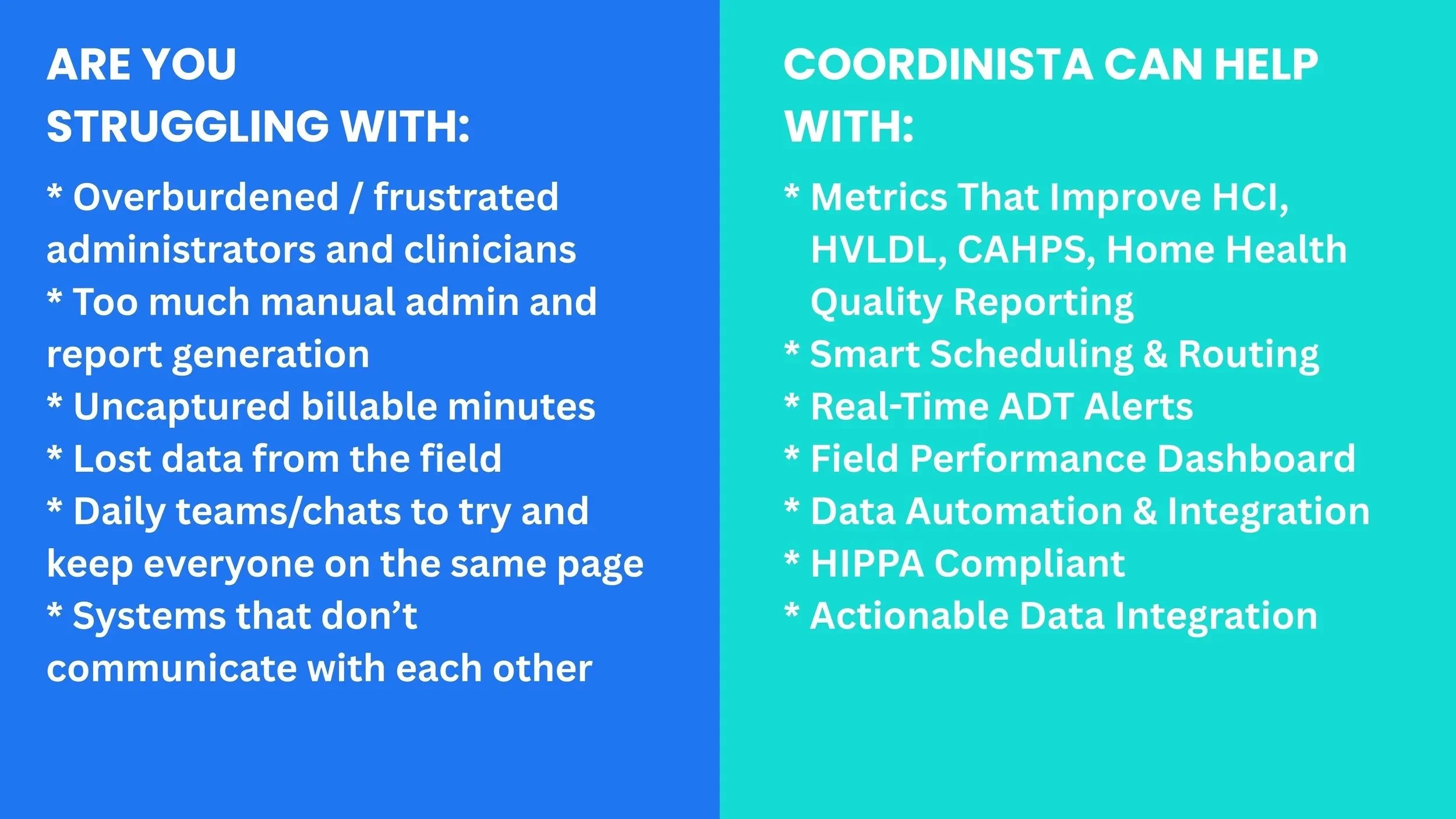 Ready to transform your Home Healthcare or Hospice services? Learn more about how Coordinista can empower your practice.